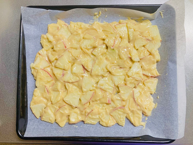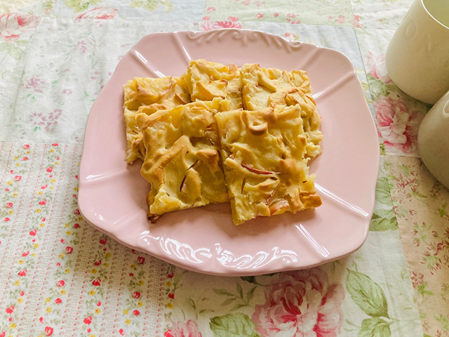 りんごの部分はソフトな食感ですが、生地の部分はカリッとしているのでケーキというよりはクッキーのように手軽に食べられます。