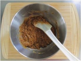 1、 ボールにアーモンドプードル、ココナッツシュガー、米粉、溶き卵を入れてよく混ぜます。