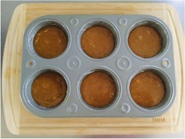 4、 3の生地を入れて、170℃に予熱したオーブンで20分焼いて完成です。